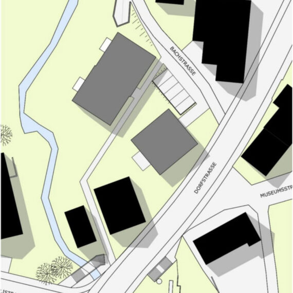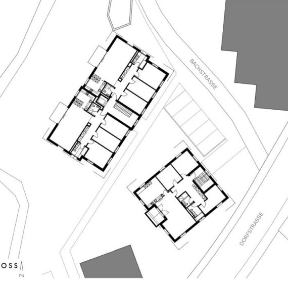 In der Kernzone in Aesch bei Birmensdorf wurde ein Vorprojekt für eine Wohnüberbauung erstellt. Die Vorgabe der Bauherrschaft war, gute Architektur, spannende Grundrisse, gut angeordnete Volumen und ruhige Aussenräume zu schaffen. Das Grundstück liegt inmitten des Dorfes in der Kernzone. Das Baugesetz schreibt klare Vorgaben über äusseres Erscheinungsbild und Dachfirstausrichtung vor, Dachfenster im 2.Dachgeschoss waren nicht erlaubt.