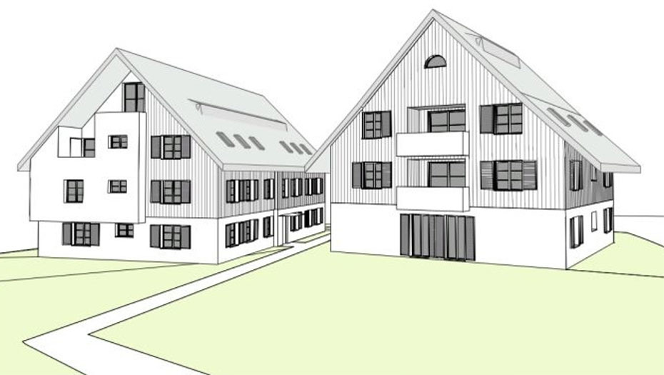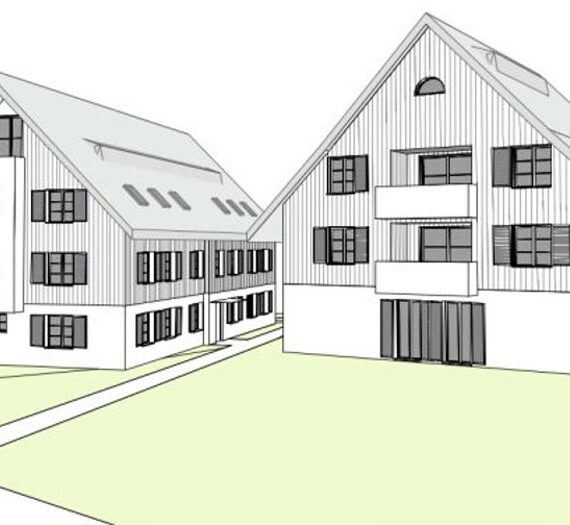 Haus A nimmt die Grundform der alten Scheune auf: Im quadratischen Gebäude mit 2 Vollgeschossen und 1 Dachgeschoss befinden sich zwei 5 ½ Zi-Wohnungen und eine zweigeschossige 5 ½ Attika-Wohnung.
